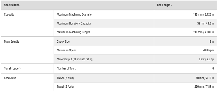 - Maximum Bar Work Size (spindle thru) 51mm (2 in.)